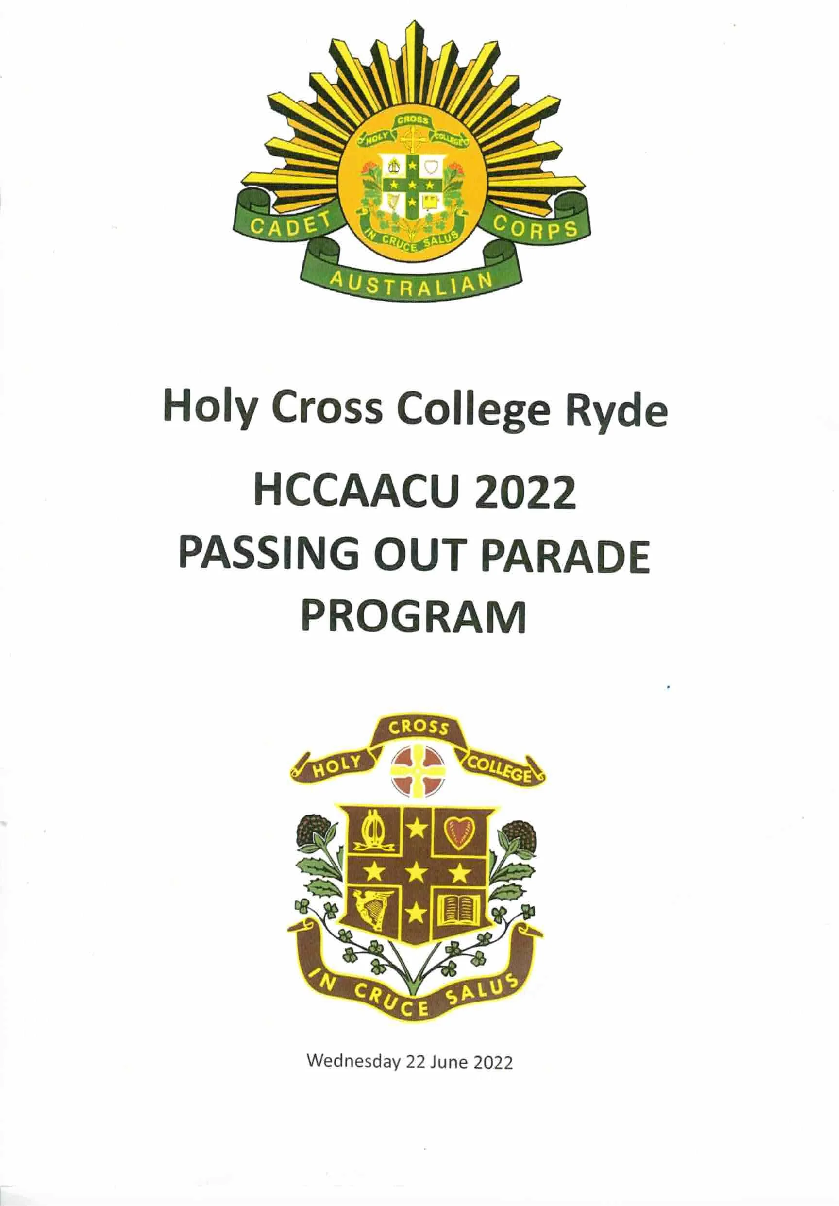 PICTURED : Holy Crosss Collefge CAdet Passing Out Parade Program
